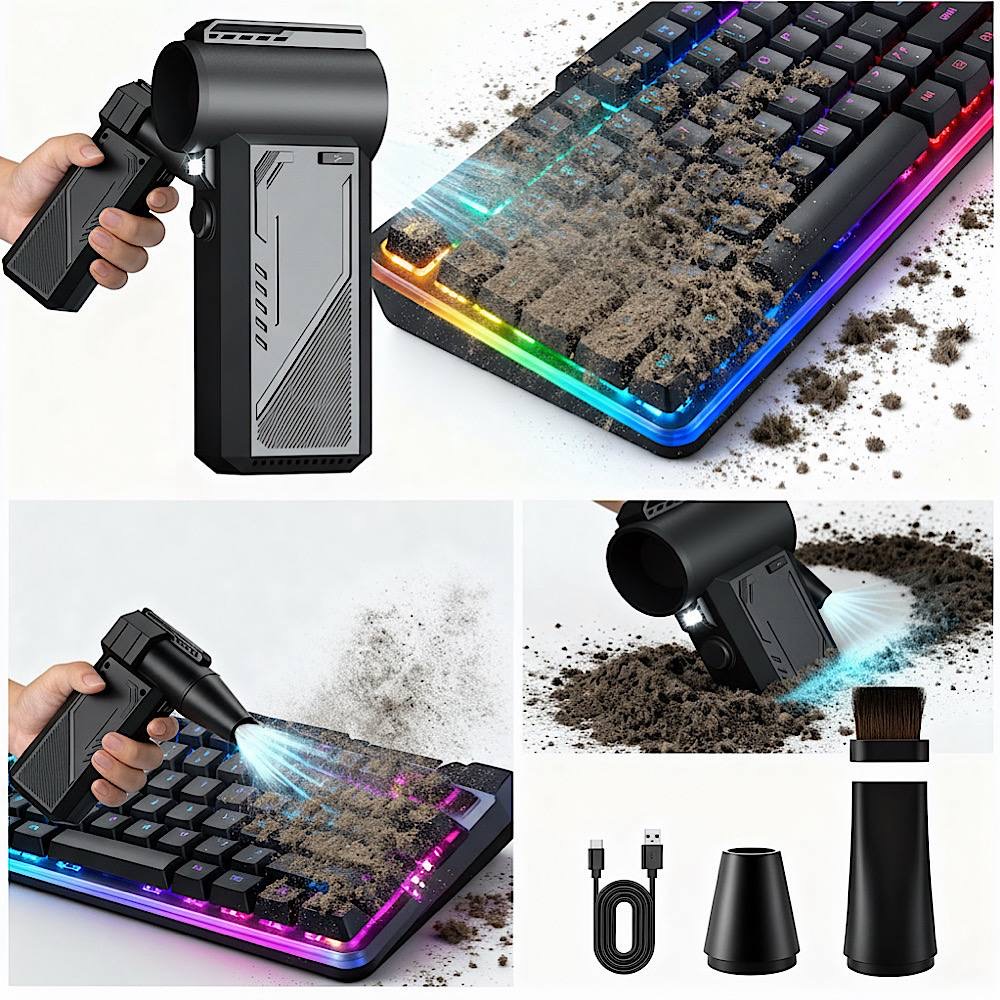 - نظافت حرفهای (بلوور): جایگزینی اقتصادی و همیشگی برای قوطیهای هوای فشرده؛ ایدهآل برای کیبورد، دوربین، دریچههای کامپیوتر و داخل خودرو.